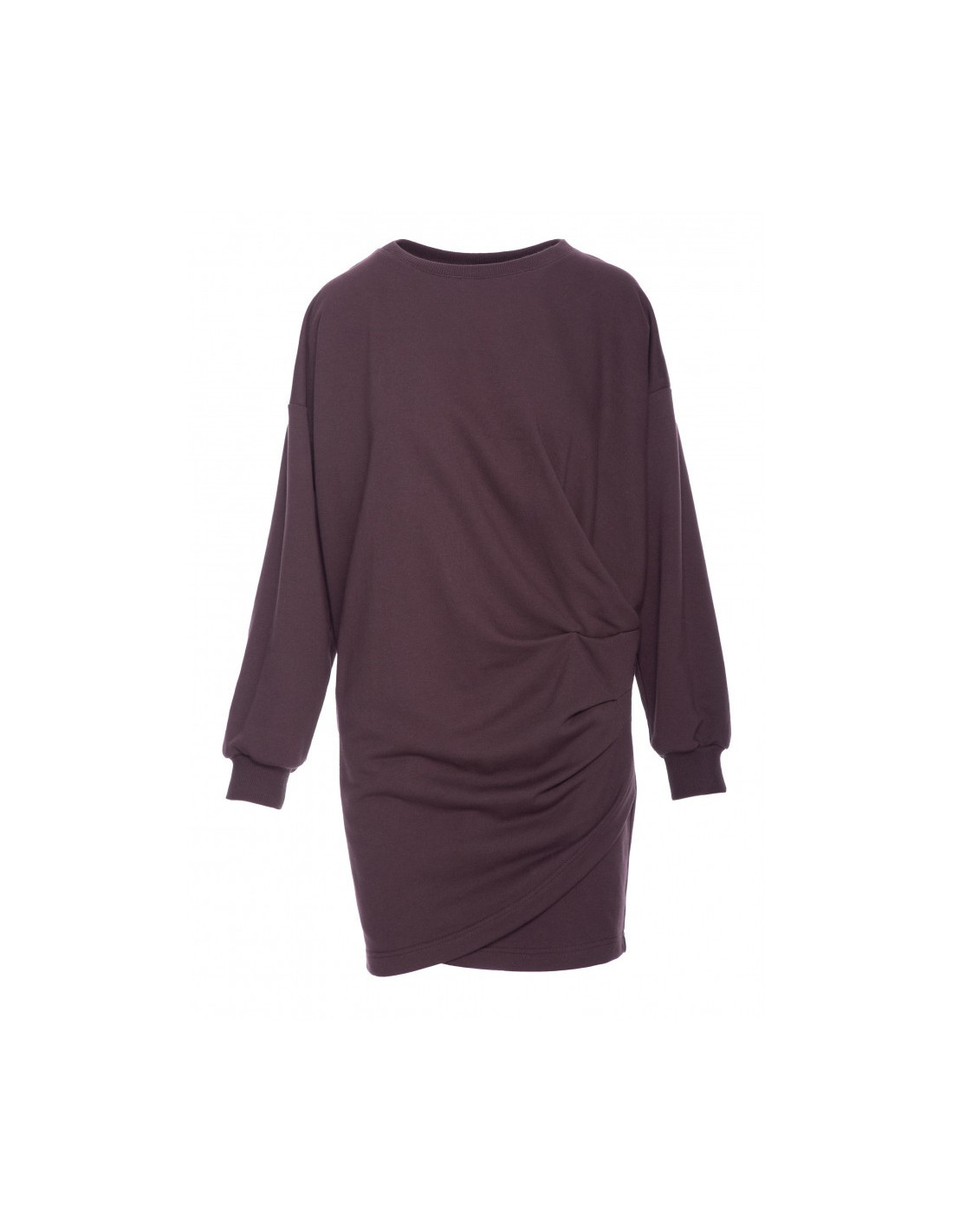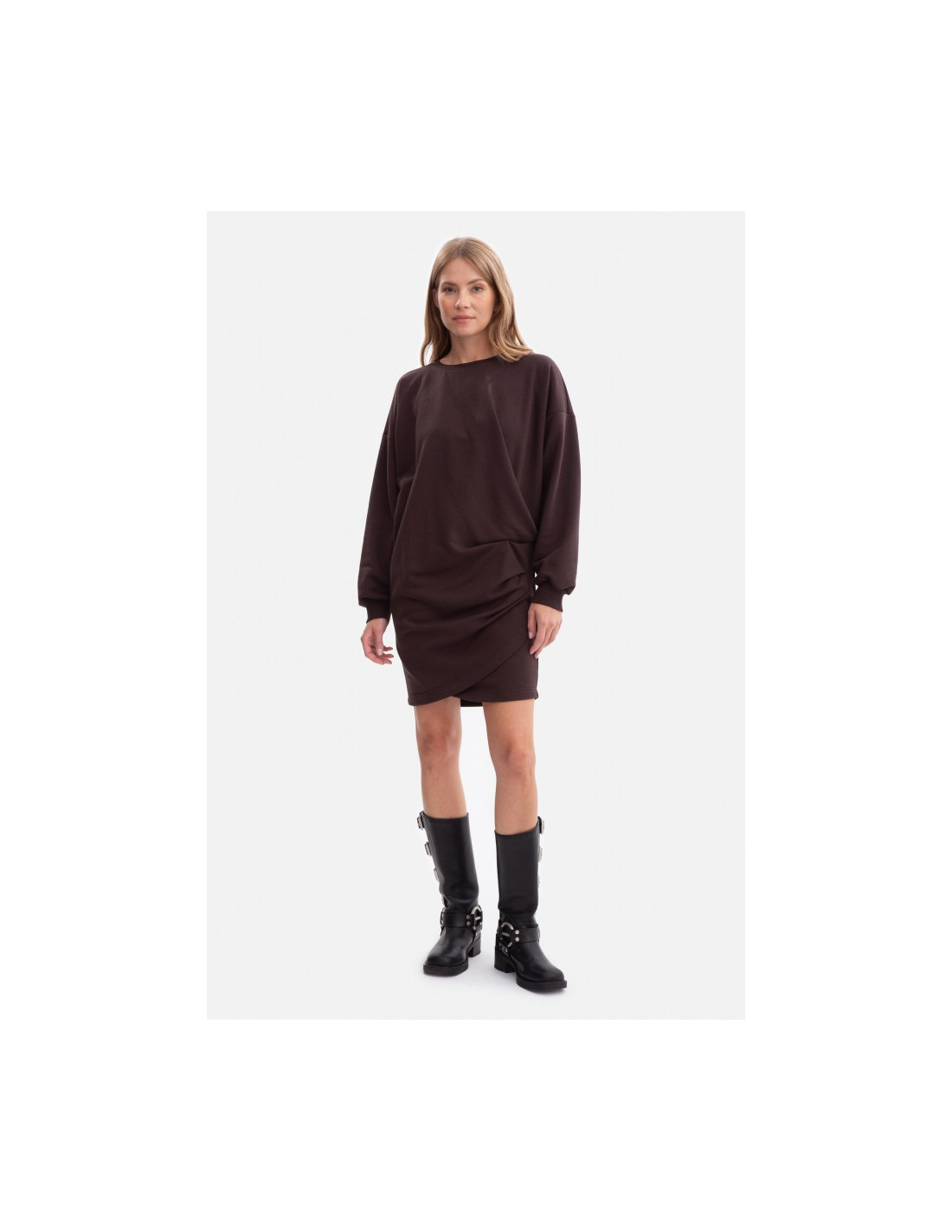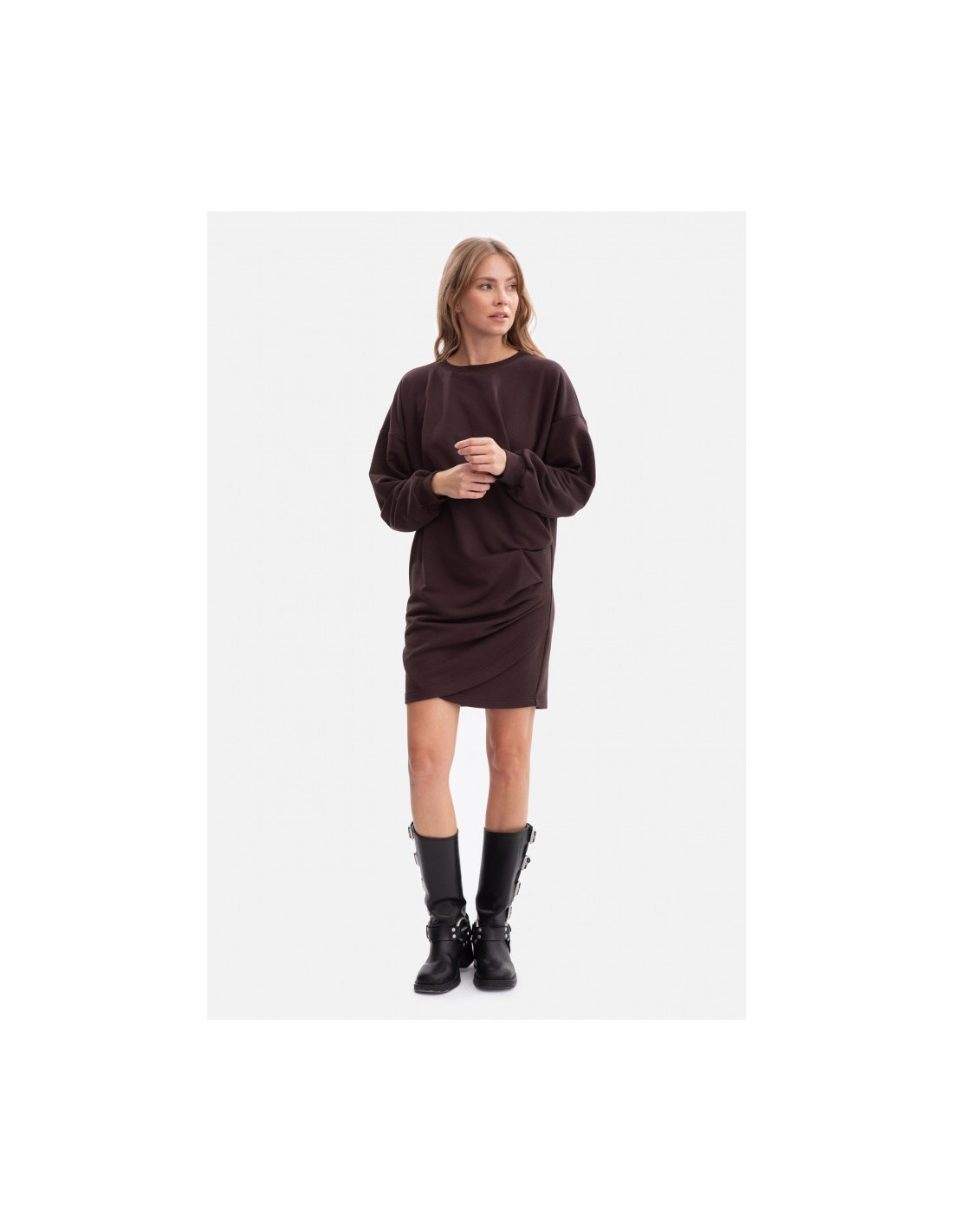 B298 Sukienka dzianinowa z zakładkami - gorzka czekolada