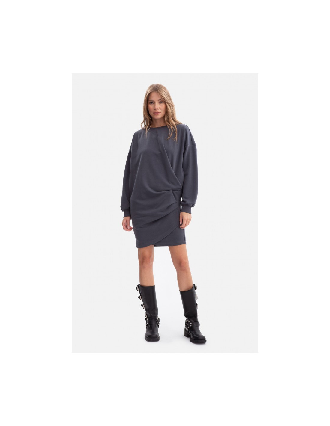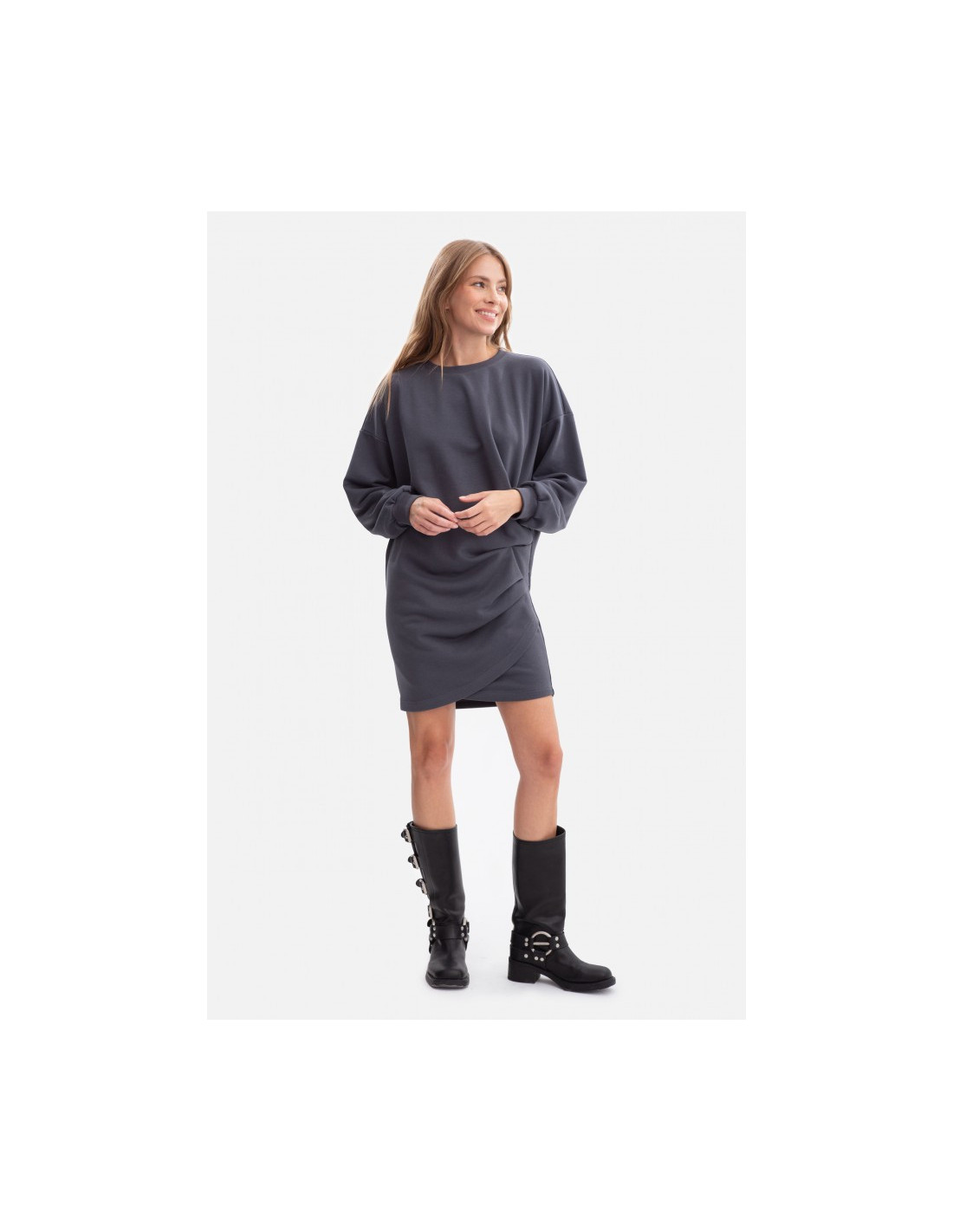 B298 Sukienka dzianinowa z zakładkami - stalowa