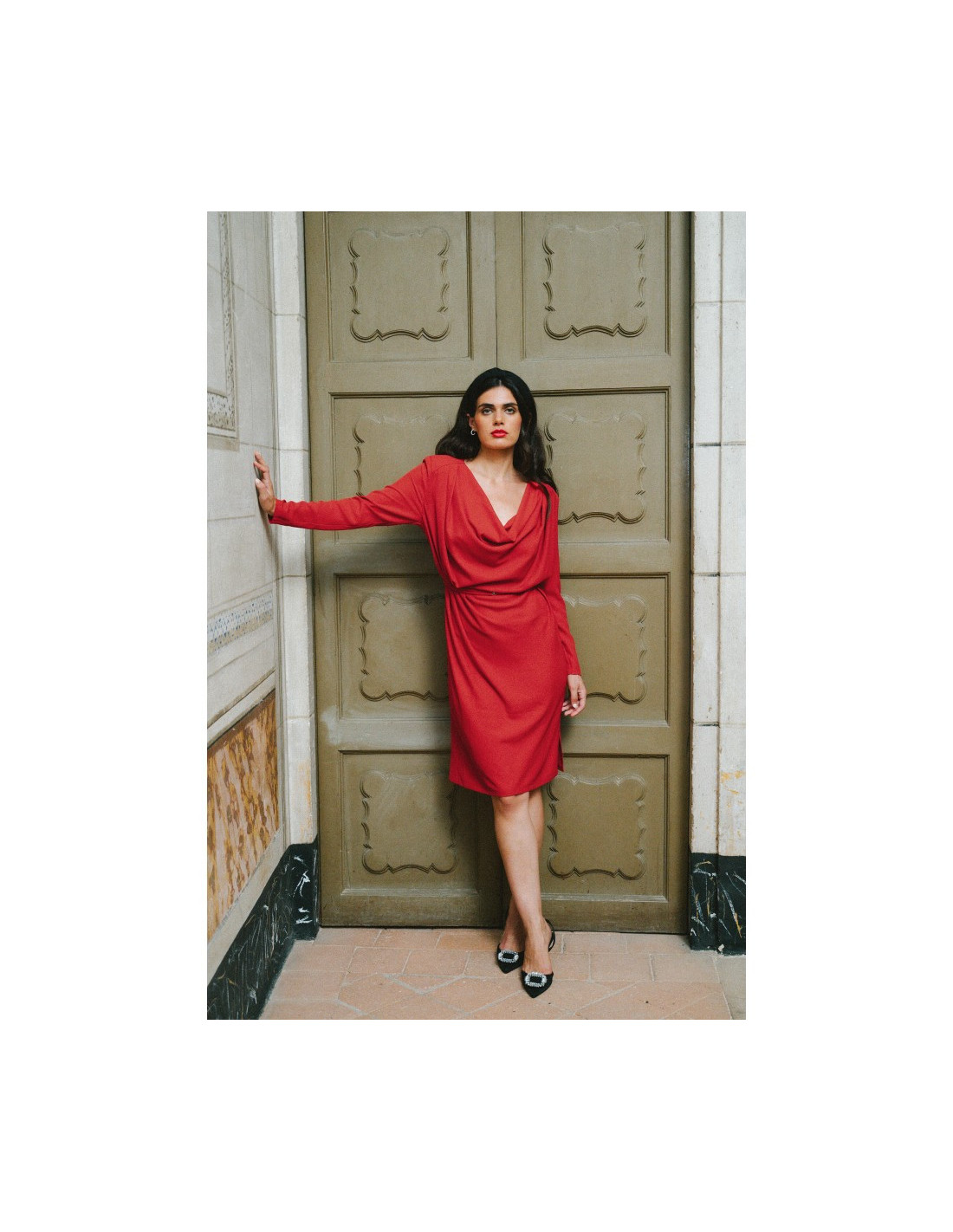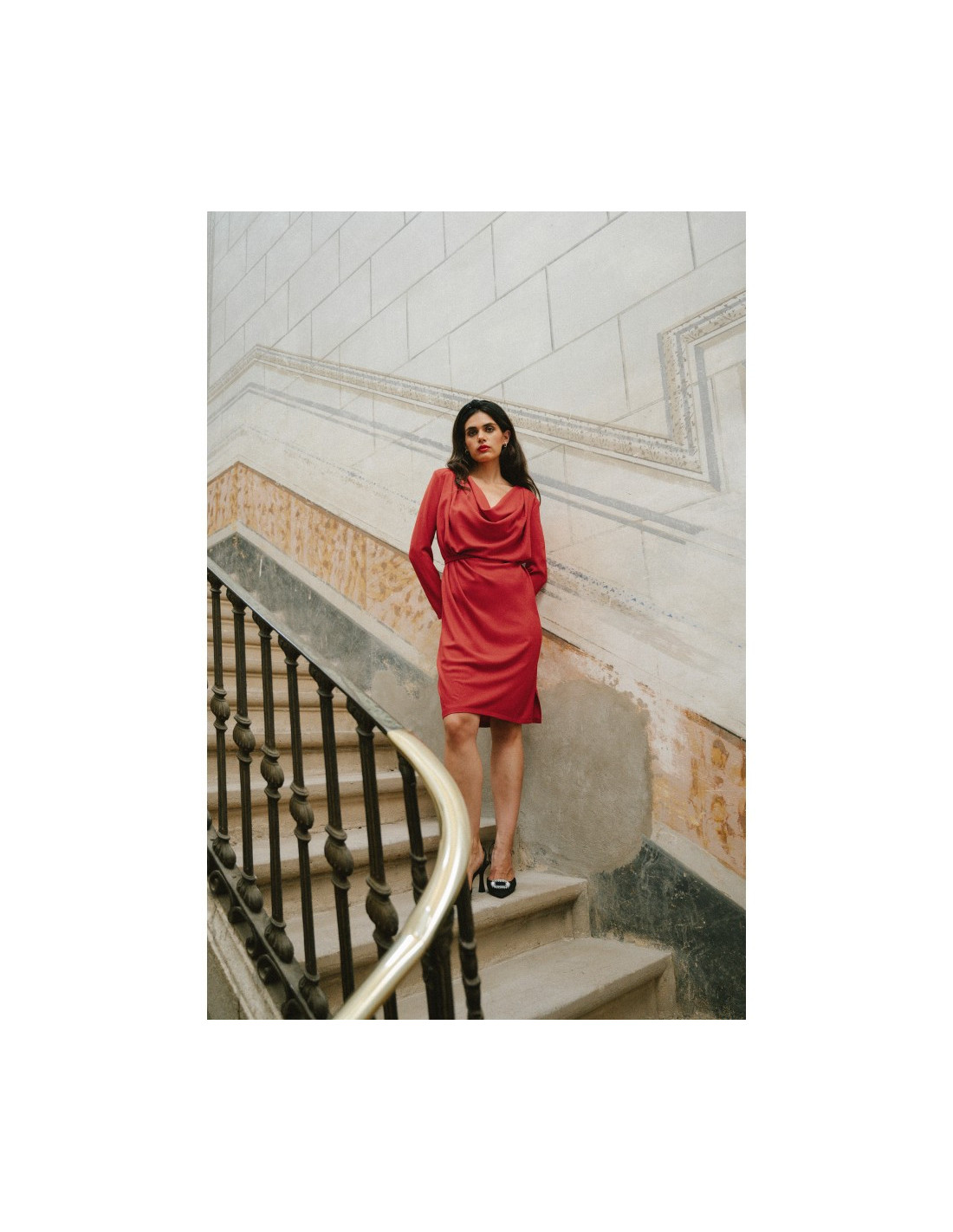 Suknelės 211-8 LEA ilga suknelė su nėriniuota iškirpte ir prakirpimu ant kojų - bordo spalvos NUMOCO NU_211-8 95 % poliesteris, 5 % elastanas Į krepšelį S (36) M (38)